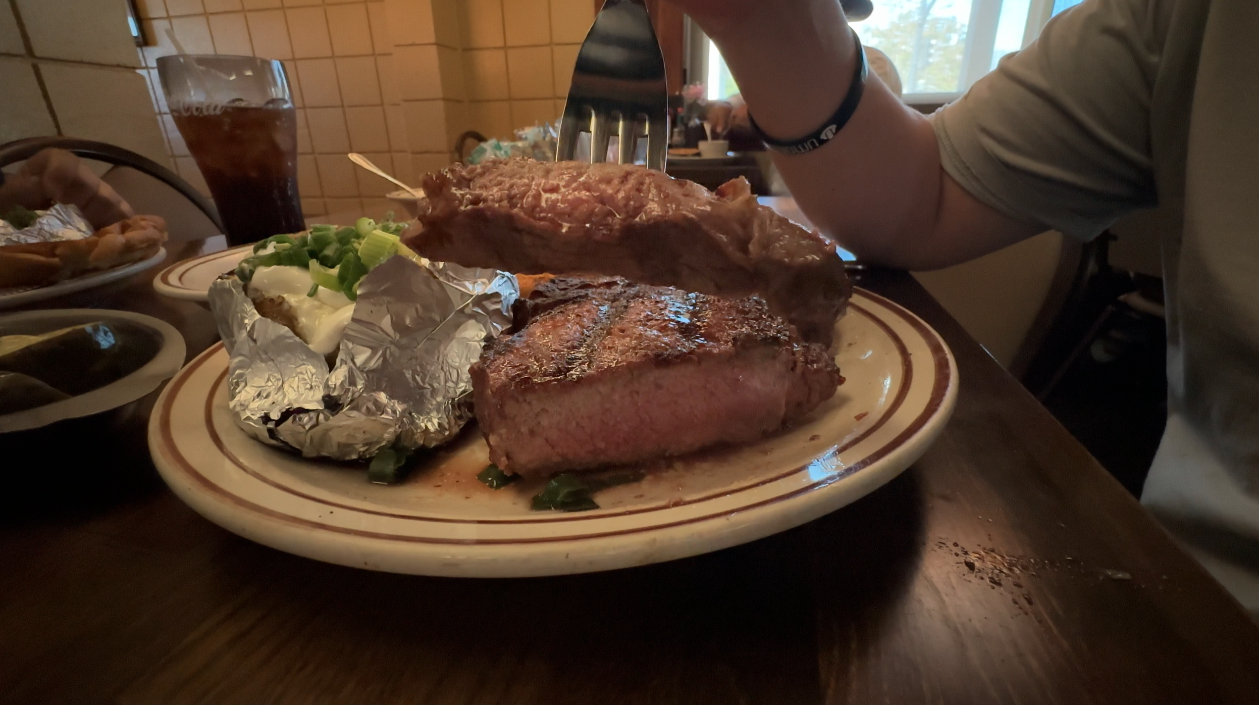 그을린 등심 안에는 촉촉하고 부드러운 육즙이 기다리고 있었다.